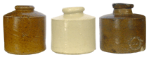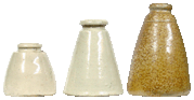 - The bottle on the left is a common variety, centre is a white-glazed version used for red ink and on the right a seldom seen version with neck pouring spout & potters mark.