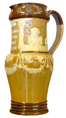 - The beer jug on the left would have been slip-glazed at the top and bottom before salt glazing.