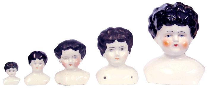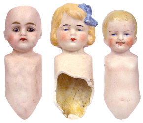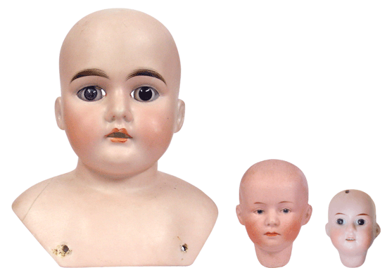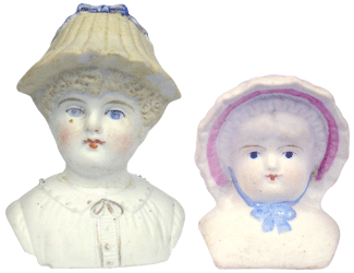 A pair of Bonneted dolls heads c 1885 taken from the old