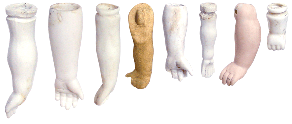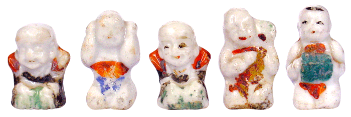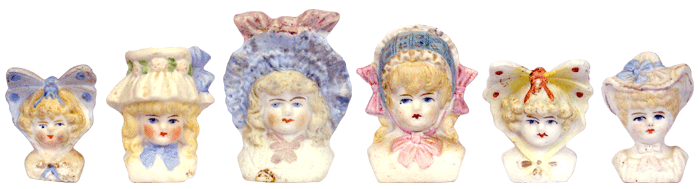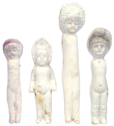 A group of Bonnet dolls. These can be found up to 85mm tall