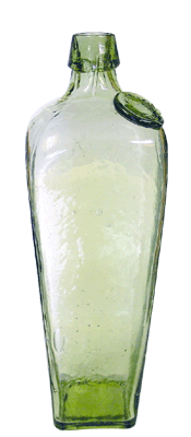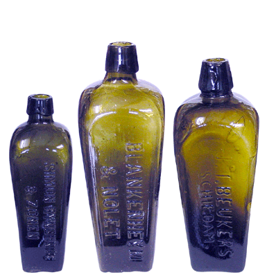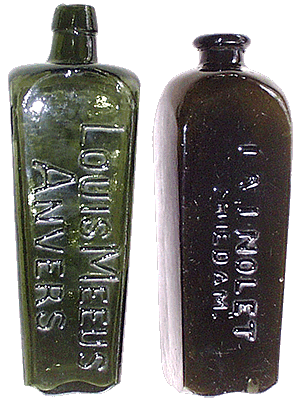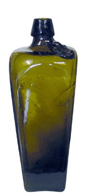 Dutch gin was the distinctive dark green four sided tapering bottle