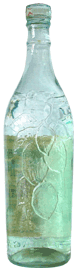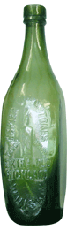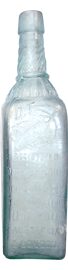 The richly embossed 2 piece mould aplied lip bottle pictured here has REGd No13 on base and India REGd No 8449 REGd No 2596 AUST. on the side and must be one of the earliest examples known. |